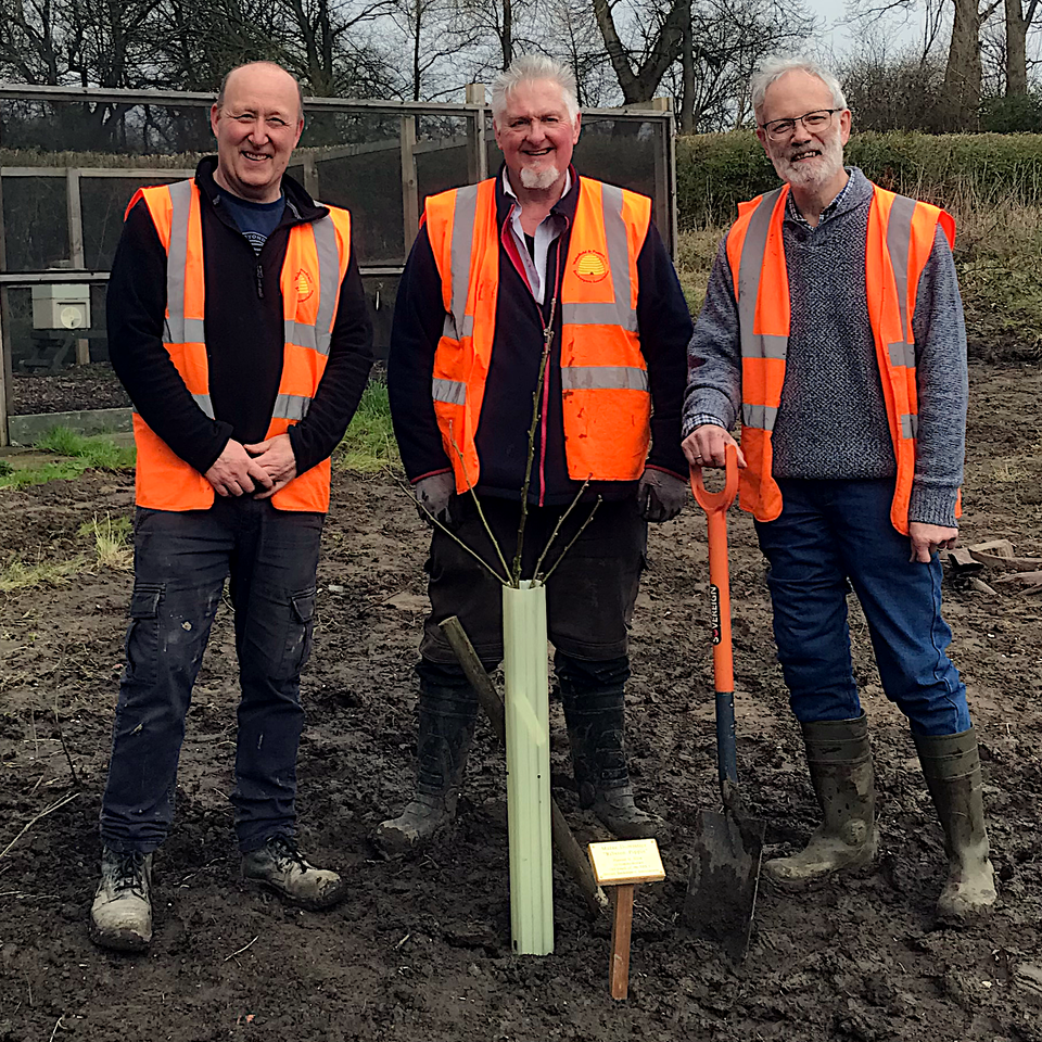 On Friday 15 March 2024, a small team of volunteers gathered at the apiary to work on the site and to plant the Ribston Pippin. The day was marked with muddy boots, plenty of chatter, and that quiet sense of satisfaction that comes from doing something that will last.